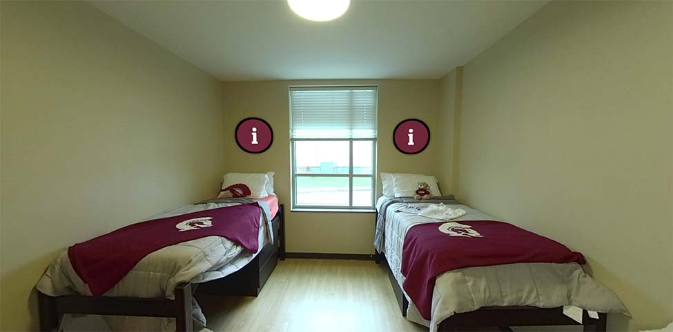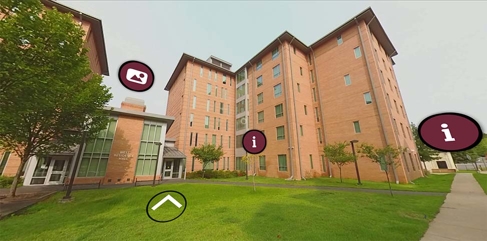 "UA Little Rock’s West Hall dormitory is the campus’s most recent student housing building. Opened in 2011, West Hall houses UA Little Rock's incoming Freshman class each year and provides a safe and enriching environment for adjusting to campus life. West Hall is LEED(Leadership in Energy and Environmental Design) Gold certified, and features premier technologies for energy efficiency and sustainable building practices. This tour, designed by the Emerging Analytics Center, allows users to virtually explore West Hall and read or listen to all of the information it has to offer. The 360 West Hall tour is currently built for both the WebGL and Oculus VR platforms."